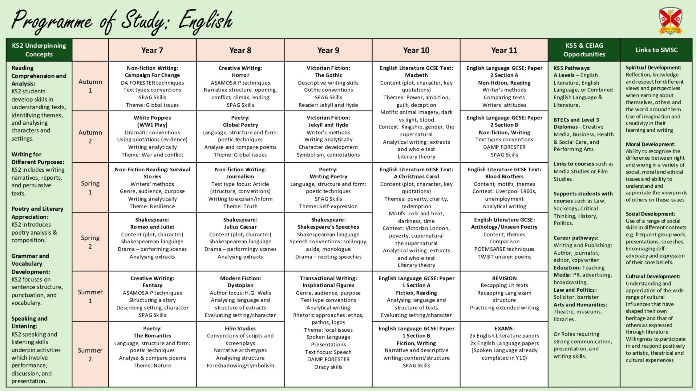 At our Catholic school, the study of English is a powerful vehicle through which pupils come to better understand themselves, others, and the world God has created. Rooted in Gospel values such as compassion, respect, truth, and dignity of the individual, our English curriculum encourages a deep appreciation of language as a means of expression, connection, and justice. Through the exploration of classical and modern literature, including Shakespeare, pre-1914 texts, poetry, and contemporary works, pupils develop a love of reading and a deeper understanding of how writers communicate complex ideas through character, theme, and language. By engaging with diverse voices and perspectives, they are challenged to consider different worldviews and life experiences, nurturing our Gospel values of truth, resilience and service to our wider community.