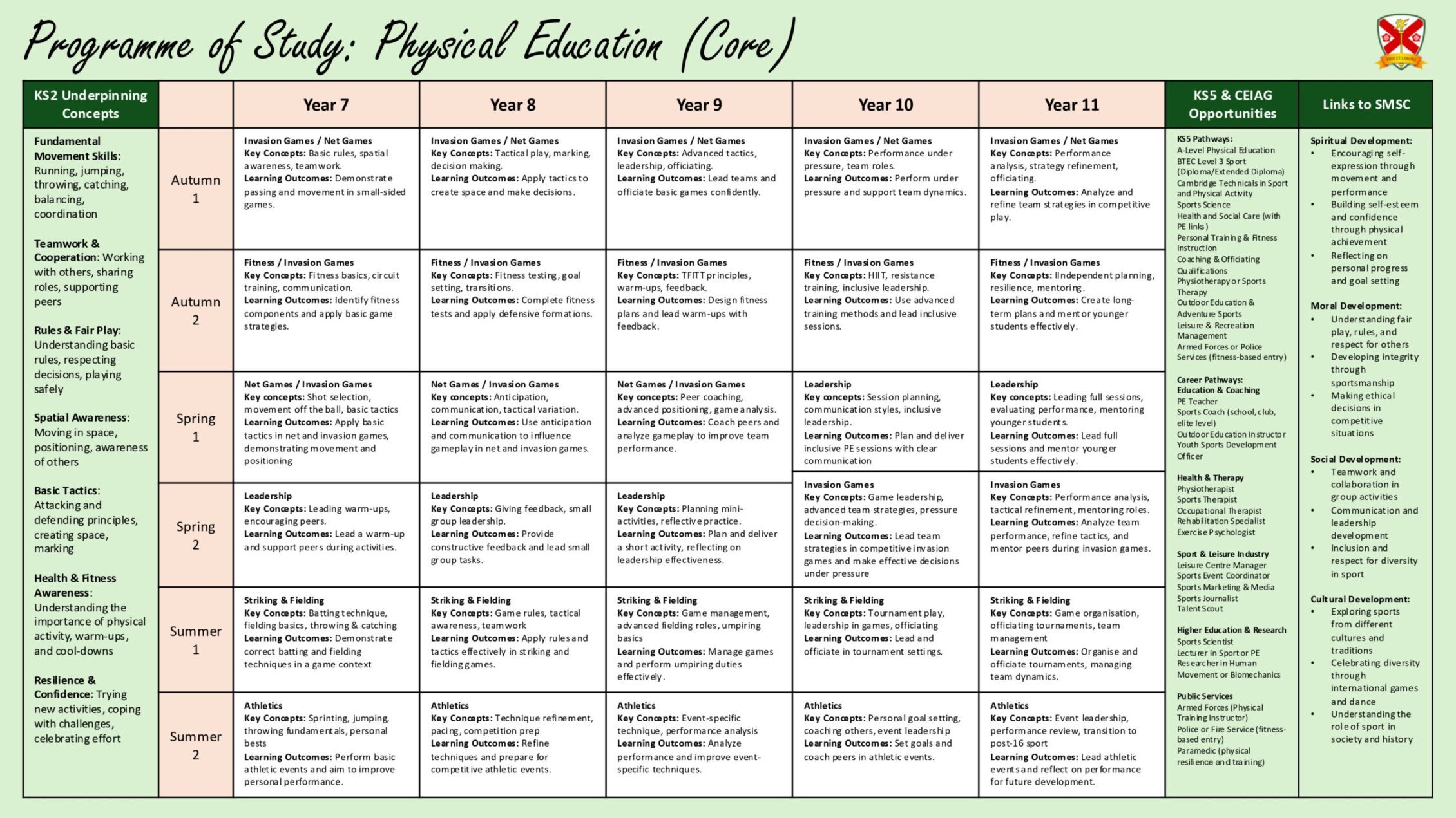 We encourage pupils to see physical activity as a lifelong gift, nurturing health, confidence, and wellbeing while recognising the body as a temple of the Holy Spirit. Through inclusive opportunities in sport, games, and fitness, every student is supported to experience joy in movement, build self-esteem, and develop the resilience to persevere through challenge.