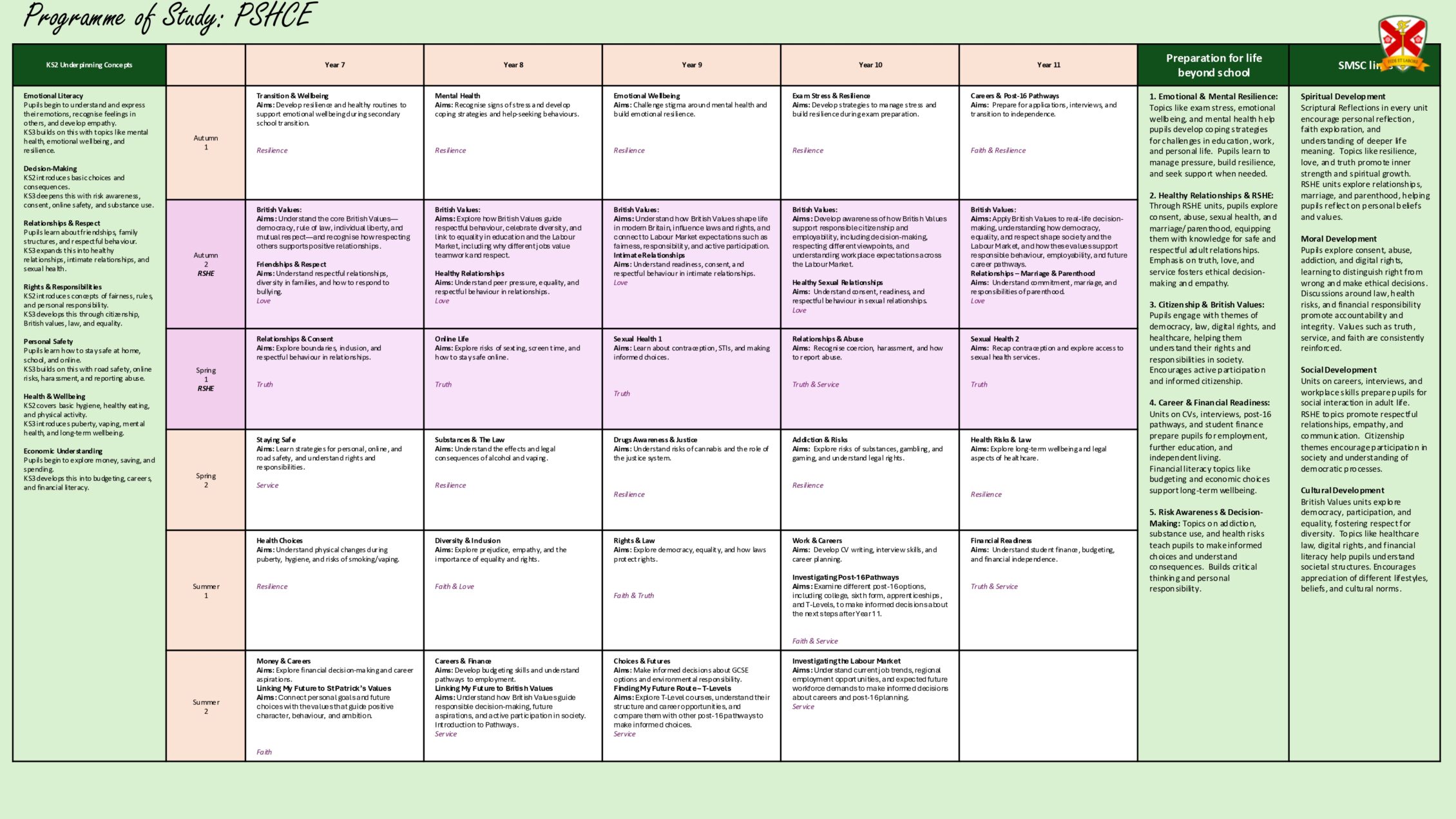 From Year 7 to Year 11, PSHCE and RSHE are taught through form time, dedicated lessons, and cross-curricular links, including Citizenship and Careers Education. This integrated approach ensures that pupils receive a broad, balanced, and coherent experience that prepares them not only for academic success, but also for life beyond school.
