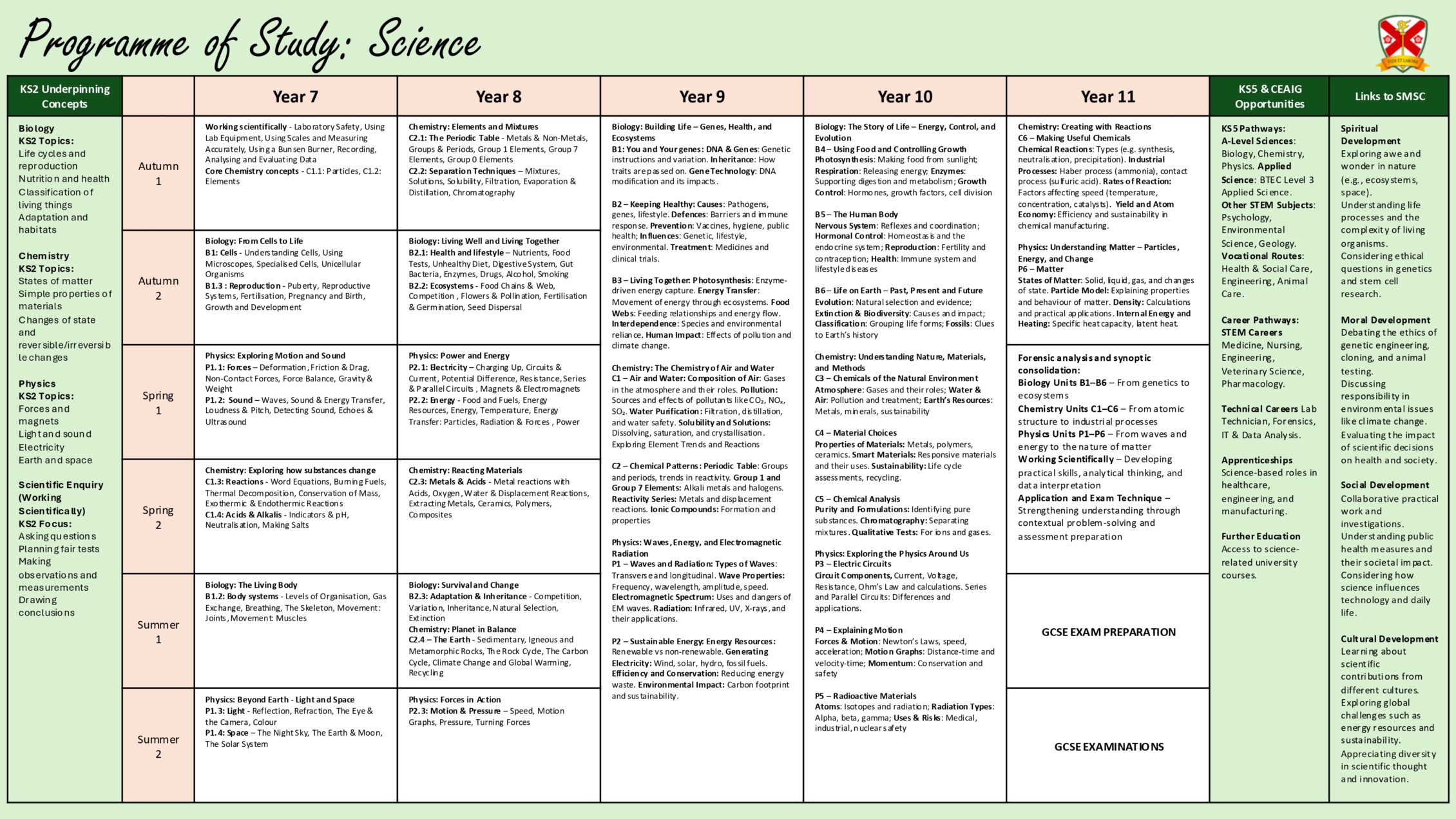 - Develop a secure body of scientific knowledge and conceptual understanding across biology, chemistry, and physics, enabling them to make informed decisions and appreciate the complexity and beauty of the world.